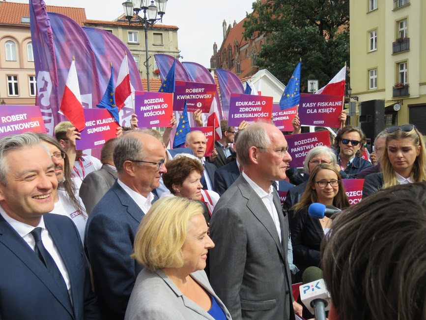mieli okazję spotkać się z liderami partii Lewicy, którzy przyjechali specjalnym autokarem w barwach kampanii,